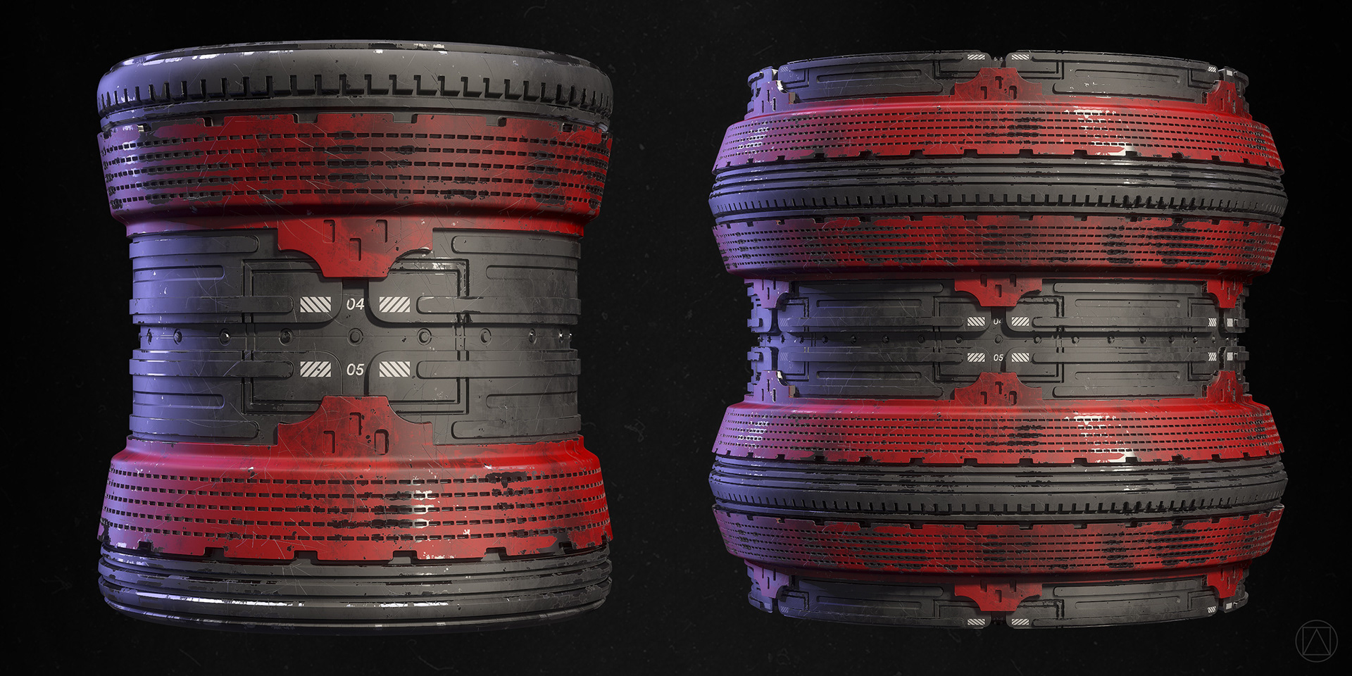 A sci-fi material created in Substance Designer and rendered in Marmoset Toolbag 3.